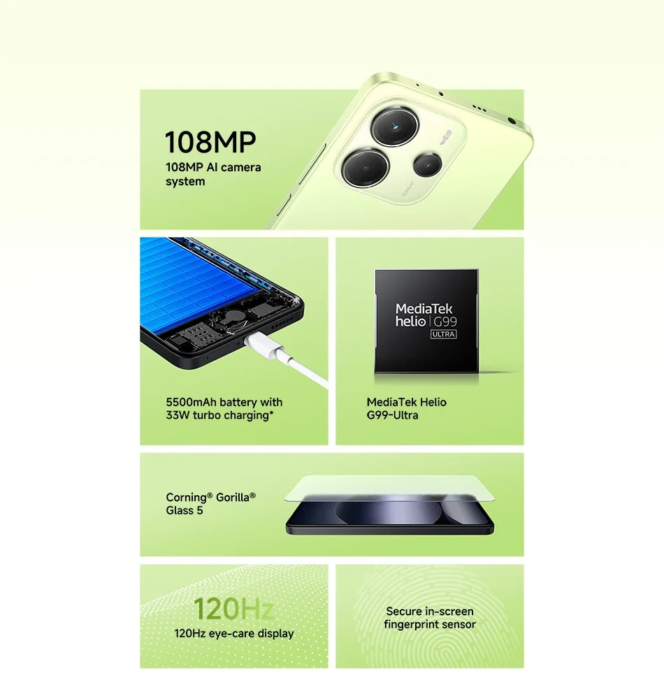 Xiaomi Redmi Note 14 Global Version MediaTek Helio G99-Ultra 120Hz 108MP AI Camera 5500mAh 33W 6.67″ AMOLED
